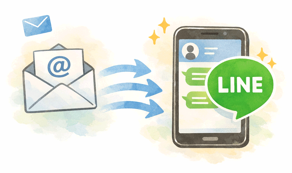 メールをLINEへ自動転送するクラウドサービスです。こんな「ヒヤリ体験」、最近ありませんでしたか?・大事なメールを見落として、後から冷や汗をかいた